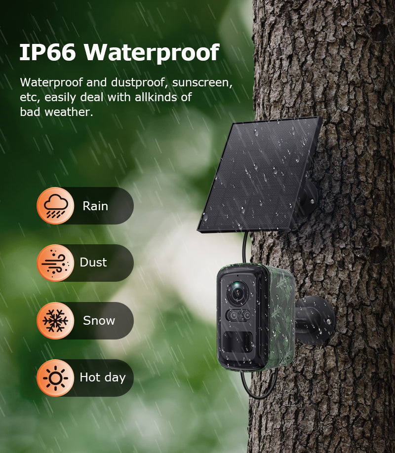 • ☔ Resistente al clima extremo (IP66) soporta lluvia y hasta 60°C